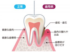歯を支えている骨がだんだん溶けて下がってしまい、歯周病になります。